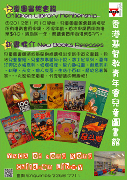 Starting from 1st January 2012, Children Library will accept the membership application from ALL-AGED YMCA members. The membership fee is HK$40 for a year and the renew fee is HK$35.
